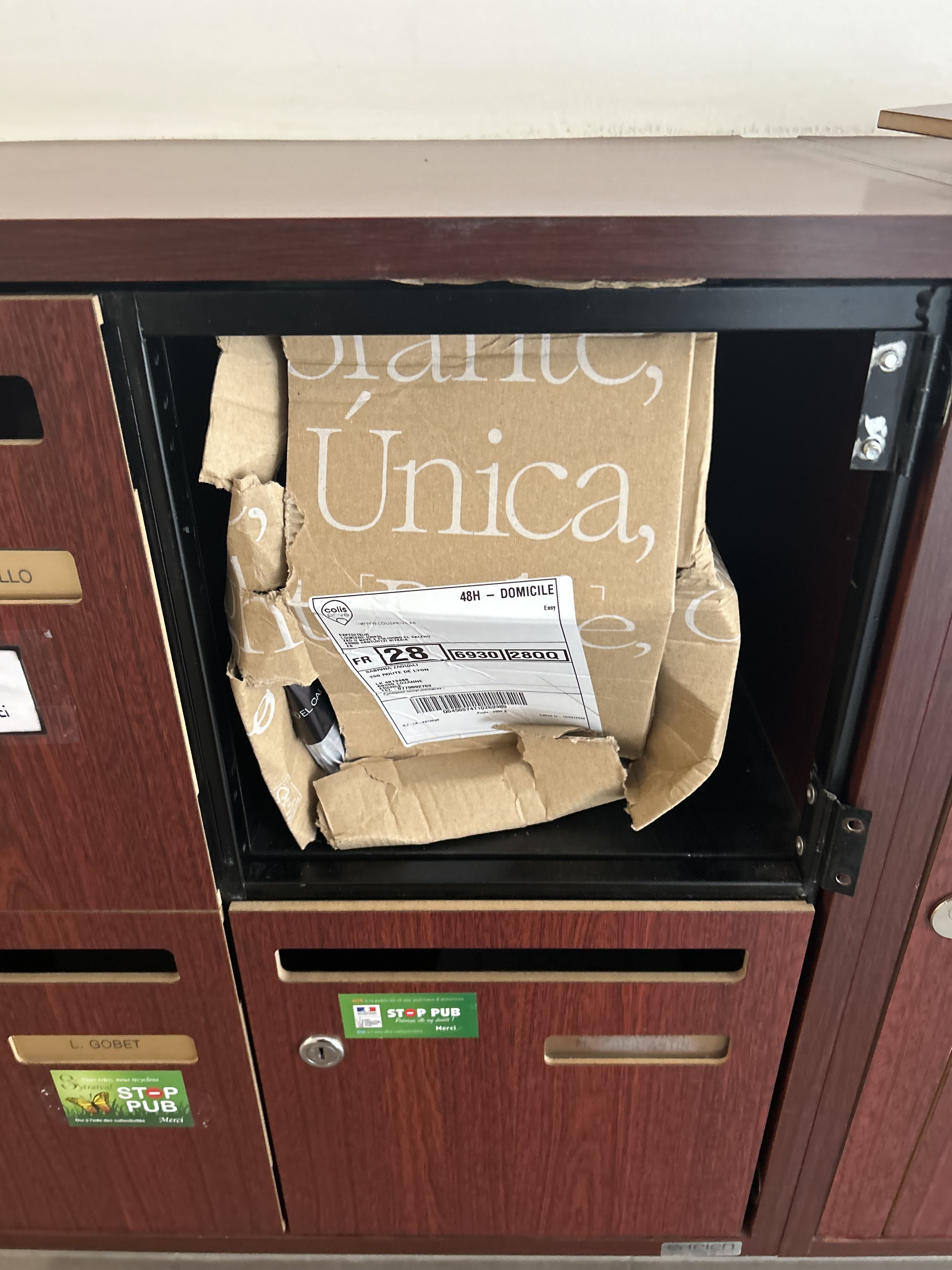 Un livreur qui casse carrément ma boîte aux lettres parce que le colis ne passe pas . Il me raccroche au nez une plainte sera déposée